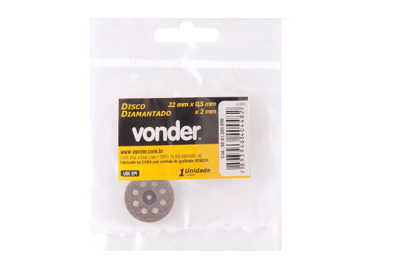 Disco de corte diamantado 22 mm para micro retifica VONDER Descrição do Produto e Dados Técnicos